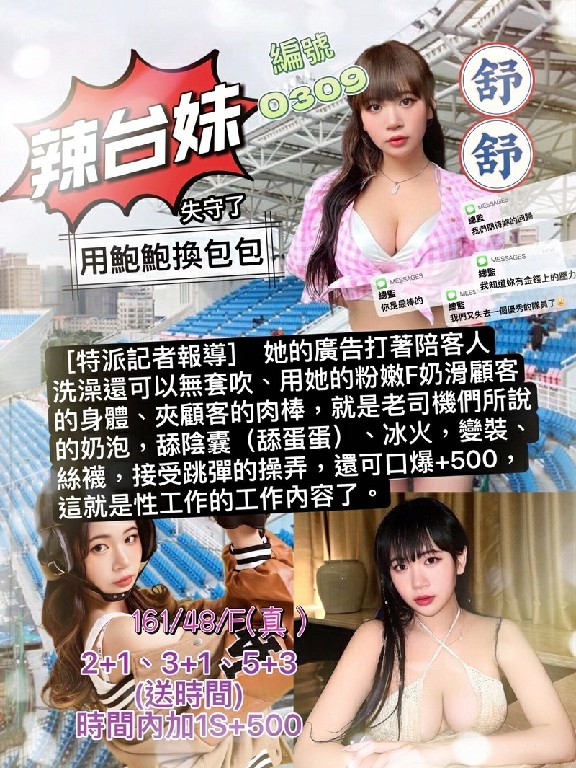 加值服務:口爆+500、顏射+500、無套+1000